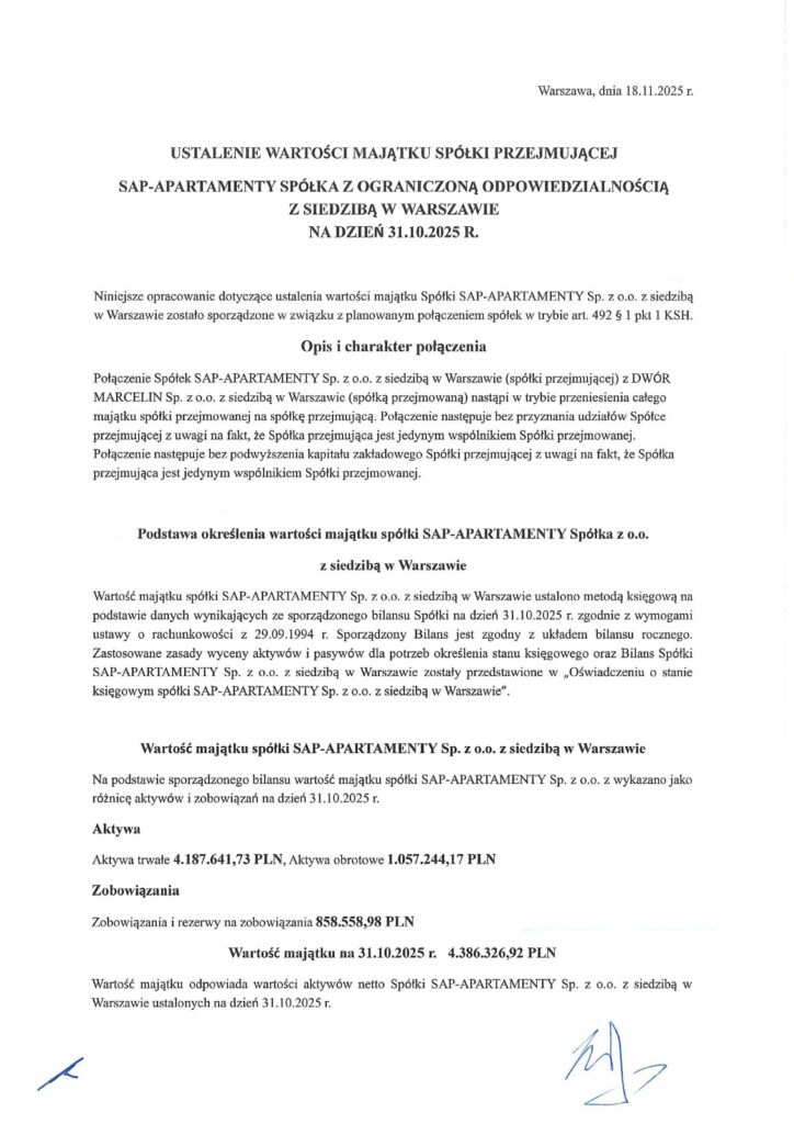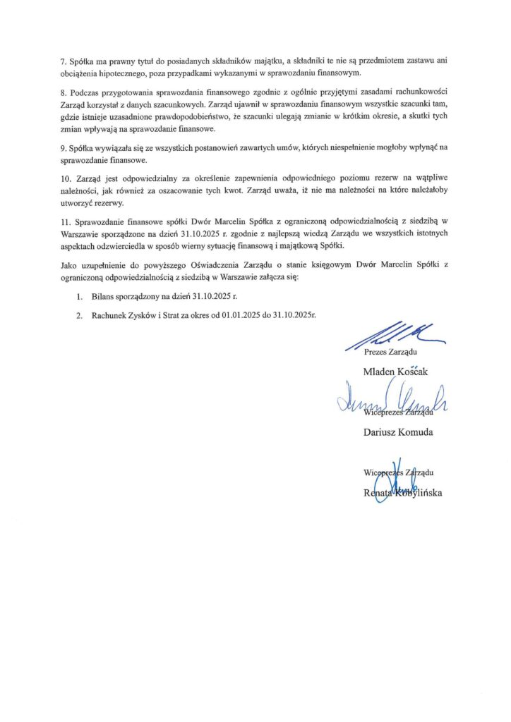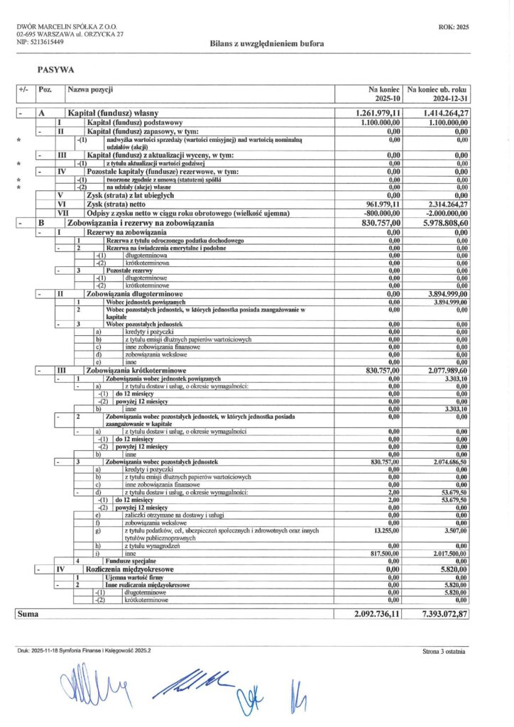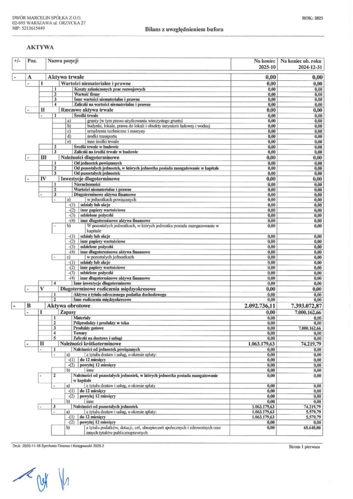 DOKUMENTY FINANSOWEDokumenty finansowe DWÓR MARCELIN Sp. z o.o. za 2024 rok oraz 1-3 kwartał 2025 roku. Dokumenty finansowe SAP-APARTAMENTY Sp. z o.o. za 2024 rok oraz 1-3 kwartał 2025 roku.